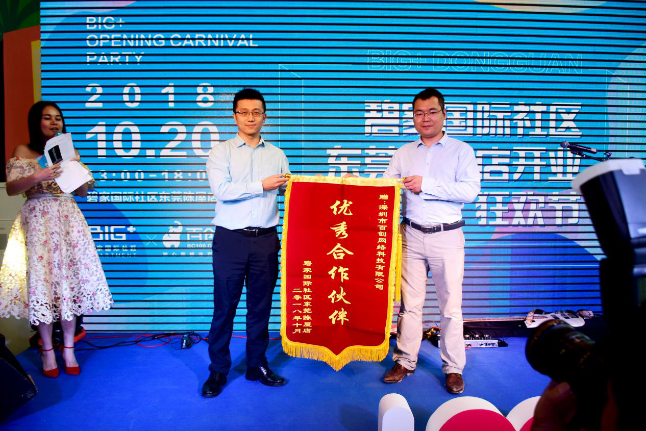 开业典礼上,碧桂园莞深区域长租公寓管理部副总经理杨巍对百创整装的高质量交付体系、规范化施工管理和A级高标准验收结果表示高度赞扬与认可,并于现场授予百创整装“优秀合作伙伴”锦旗。