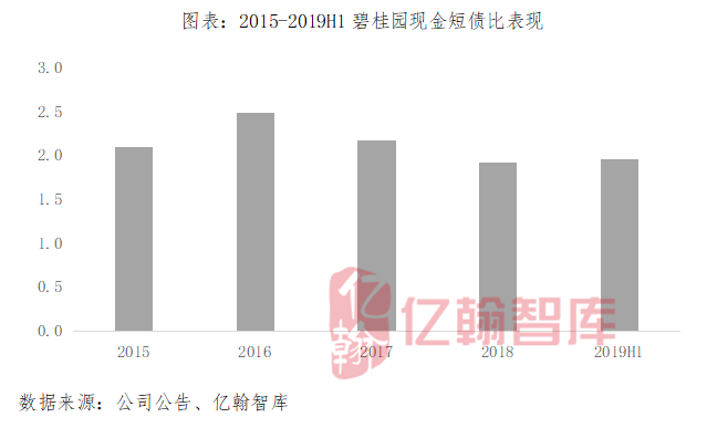 自2016年起,碧桂园的销售回款率便保持在90%以上,并稳中有升,2019年中期更是达到94.3%。得益于较高的销售回款率,公司经营性现金流净额从2016年开始一直保持正数,现金流压力不大。不过值得注意的是,在当前的融资环境下,企业通过外部融资方式的资金流入在减少,并且成本在提升。但是根据我们做过的企业现金流压力测试来看,大型房企尤其是类似碧桂园这样的企业,即使融资全面停止,仅依靠自身超过90%的回款率就能满足公司经营开支。