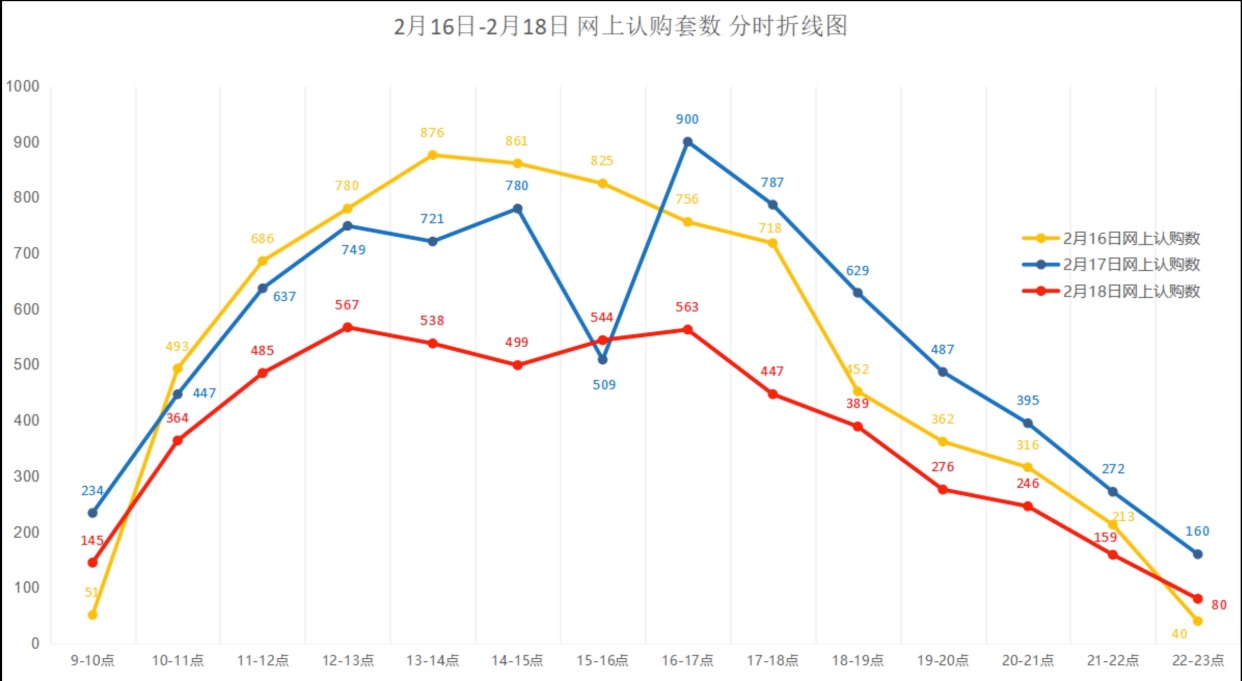 在接下来的16-18日,延续了平稳趋势,意向买家纷纷加入此次“网上购房”,其中2月16日当天网上认购7478套,2月17日7830套,2月18日认购5171套。截至18日,恒房通平台6天累计网上认购房屋68019套。按当前每天约7500套的平稳增长趋势估算,到本月29日网上认购将达到15万套。