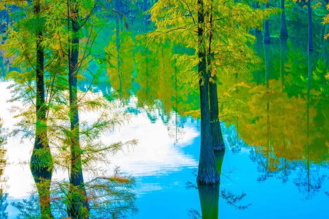 (溪谷水杉湿地实景图)