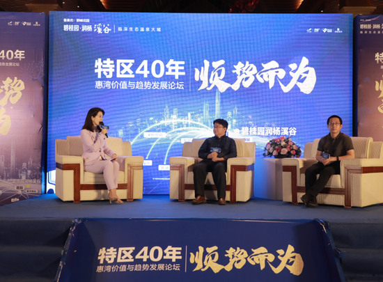 4月29日,碧桂园·润杨溪谷联合网易新闻以“特区40年,顺势而为”为主题,举办湾区价值与趋势发展论坛,邀请资深财经作家、天天说钱创始人刘晓博老师以及网易房产深圳区域总经理李旭先生,从多个角度探讨未来发展趋势以及机遇。