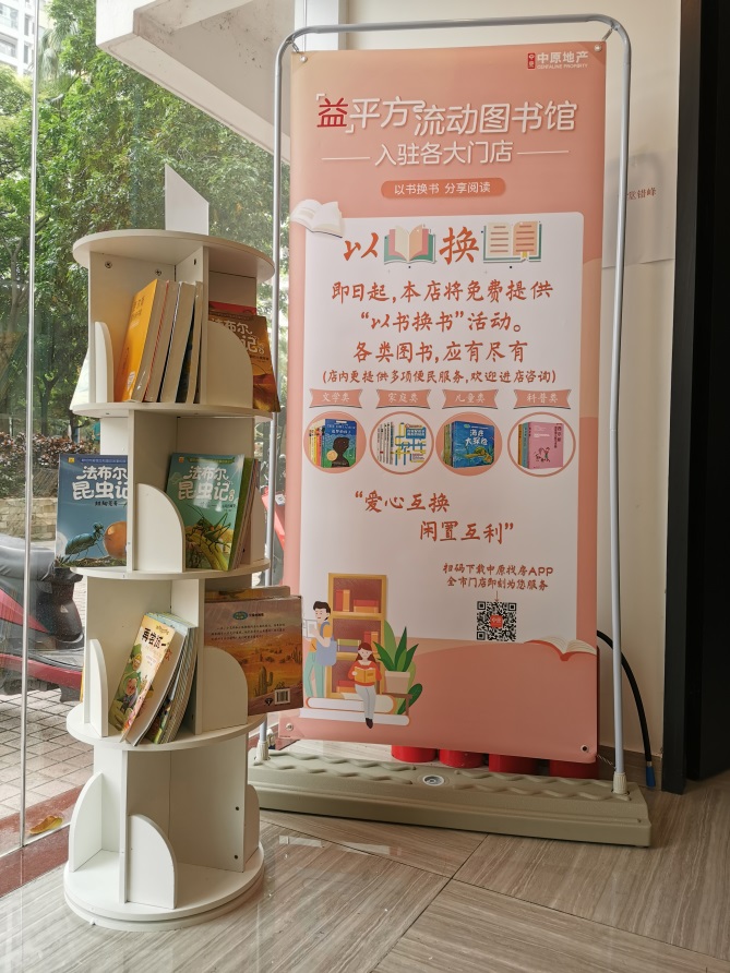 「益」平方流动图书馆的设立,是深圳中原地产积极响应政府号召,构建节约型、学习型社会的实践之一,通过公益性活动进一步链接门店与社区,切实做到便民服务就近化。