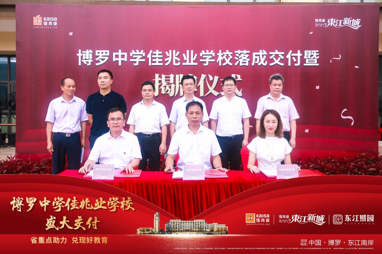 在仪式上,由博罗教育局领导、博罗中学佳兆业学校代表、佳兆业代表正式签约捐赠及交接仪式,由领导为学校正式揭牌,为博罗江南新区的教育事业掀开全新篇章!