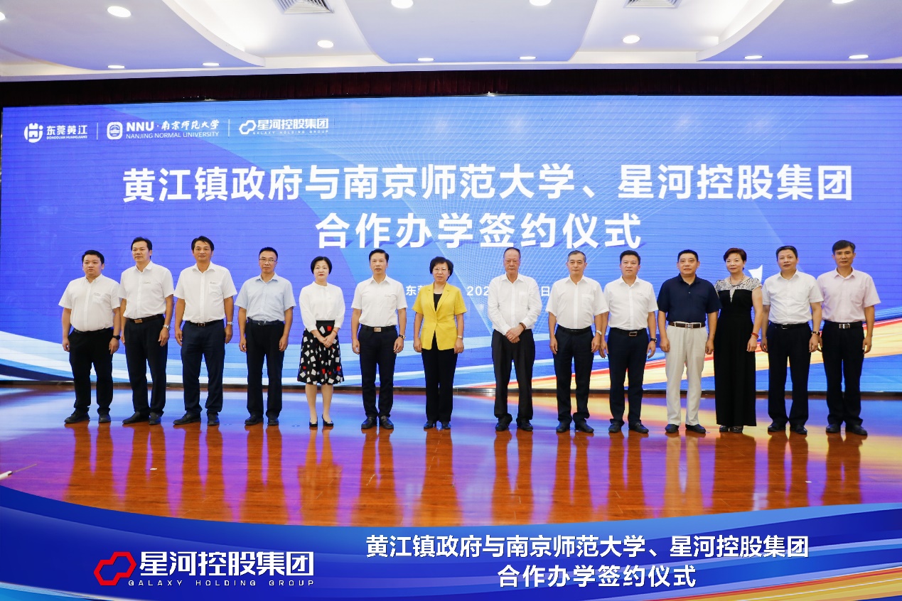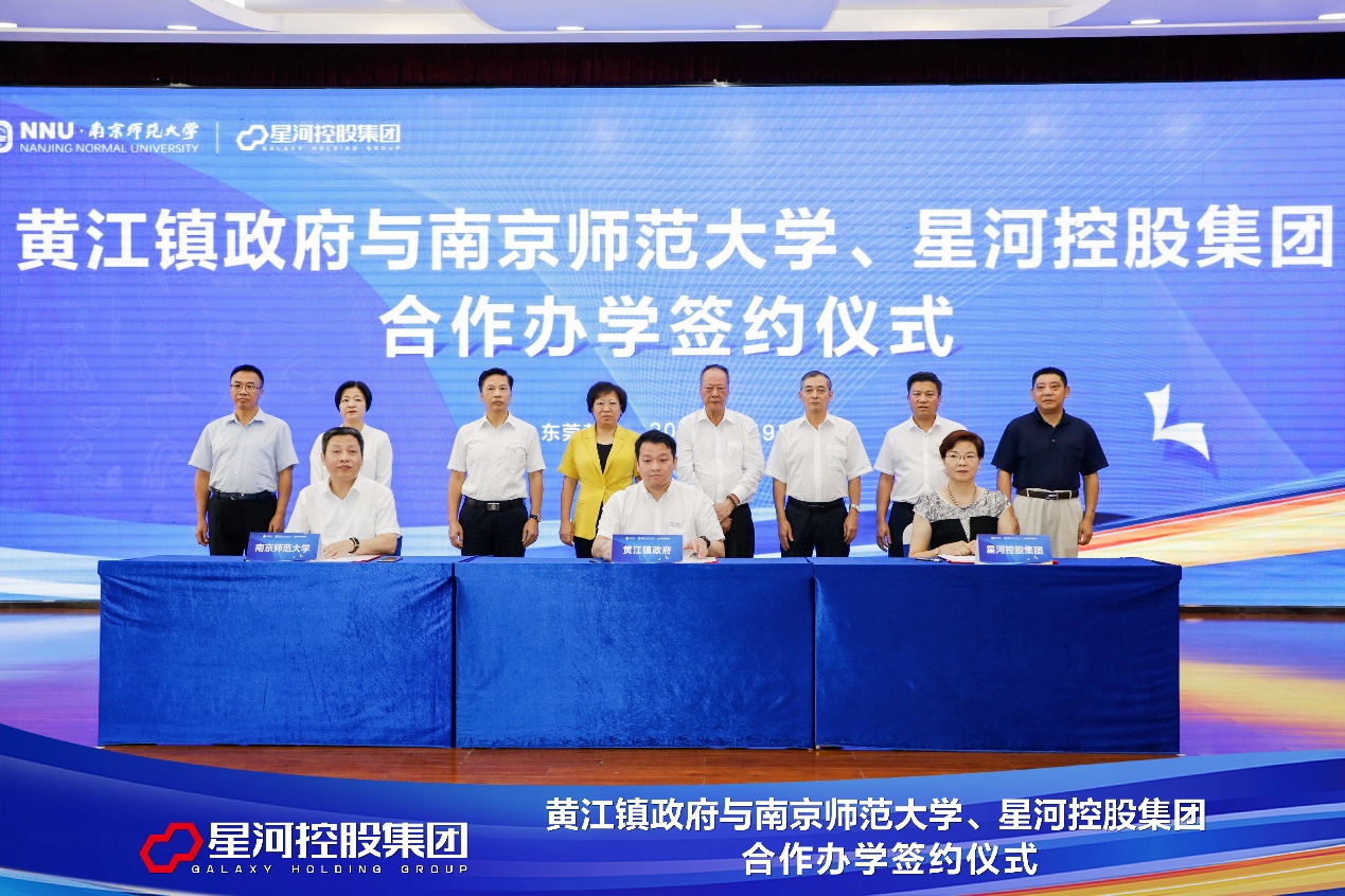 见圳客户端·深圳新闻网2020年9月9日讯 今日下午,在教师节来临之际,东莞黄江文化教育又迎来了一大盛事,黄江镇政府与南京师范大学、星河控股集团合作办学签约仪式在东莞黄江镇人民政府大会堂隆重举行,标志着南京师范大学附属黄江星河中学 (公办)正式落户星河(黄江)人工智能小镇,据悉,南京师范大学附属黄江星河中学占地约33700平方米,首次合作暂设初中,设计规模为每年级14个班,合计42个班,可容纳学生约2100人,未来三方还将就小学部、高中部的合作办学事宜展开深入的合作,在星河 (黄江)人工智能小镇打造从幼儿园到高中的一站式教育基地,此次合作也将在东莞进一步强化政企学合作办学模式。