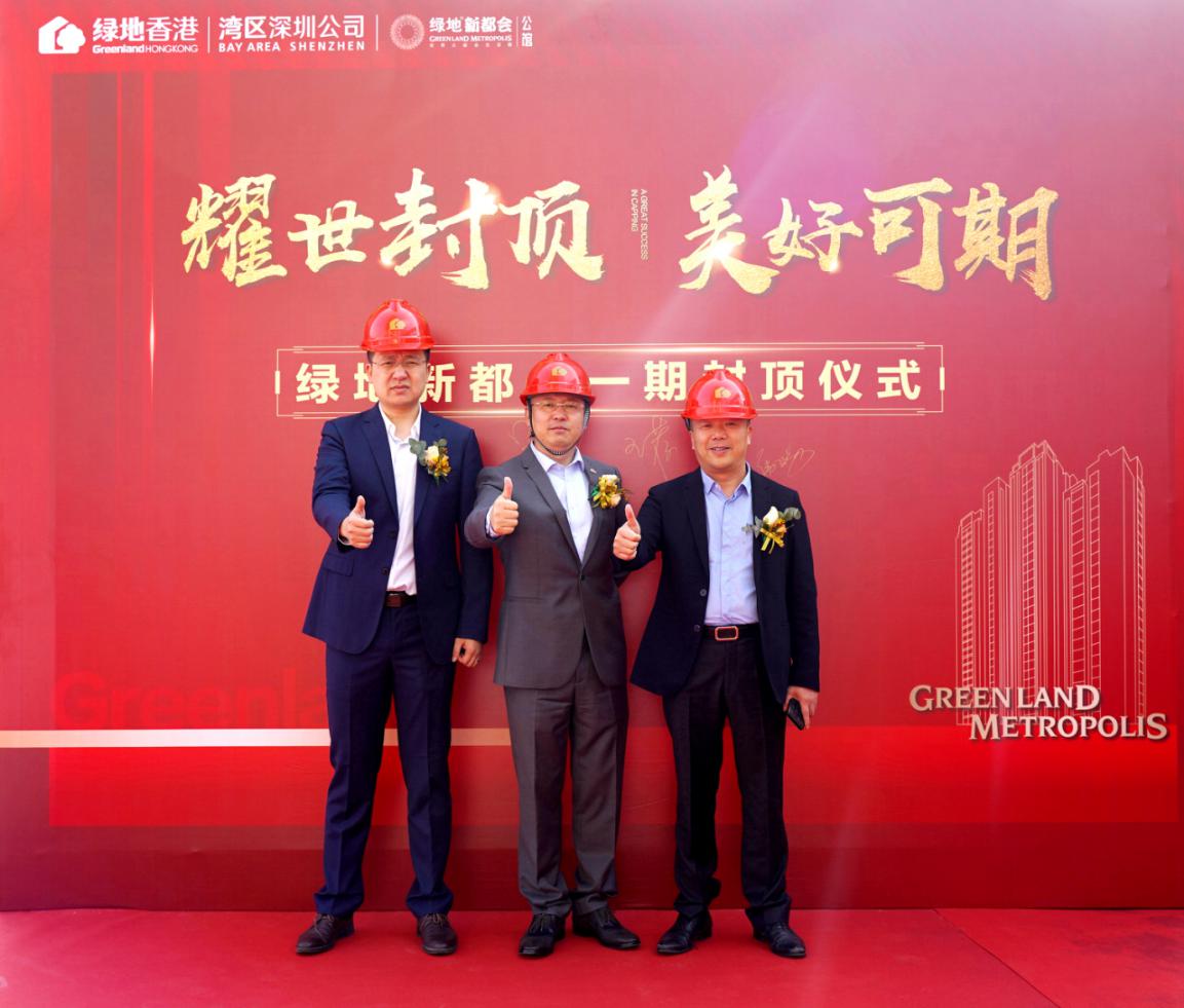 绿地香港助理总裁、湾区公司副总经理姜忠民,绿地香港湾区公司深圳区域公司常务副总经理王荐、副总经理江伟阳,各部门相关负责人等一同见证封顶。