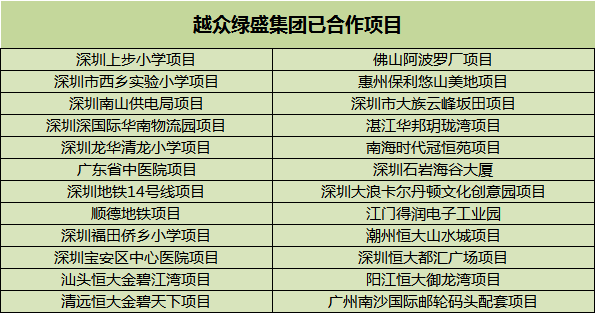 目前绿盛超强复合龙骨广泛应用于中建系统、中铁系统、中交系统、北城建、山河建设集团、深越众、深建工等大型总包单位,遍布广东省十余市,受到施工单位一致好评。