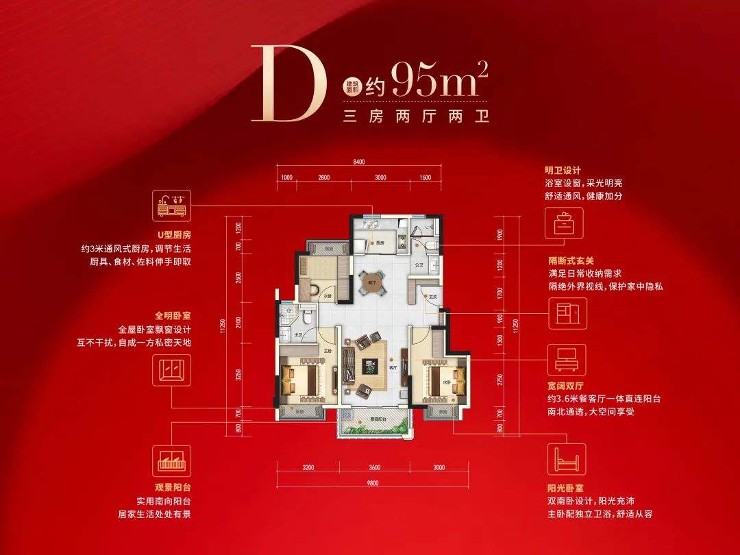 室内空间人体工学打造,大面宽设计,从容留住每一扇的风景,流淌四时风光。难得的一梯两户,尊重私密又便捷。