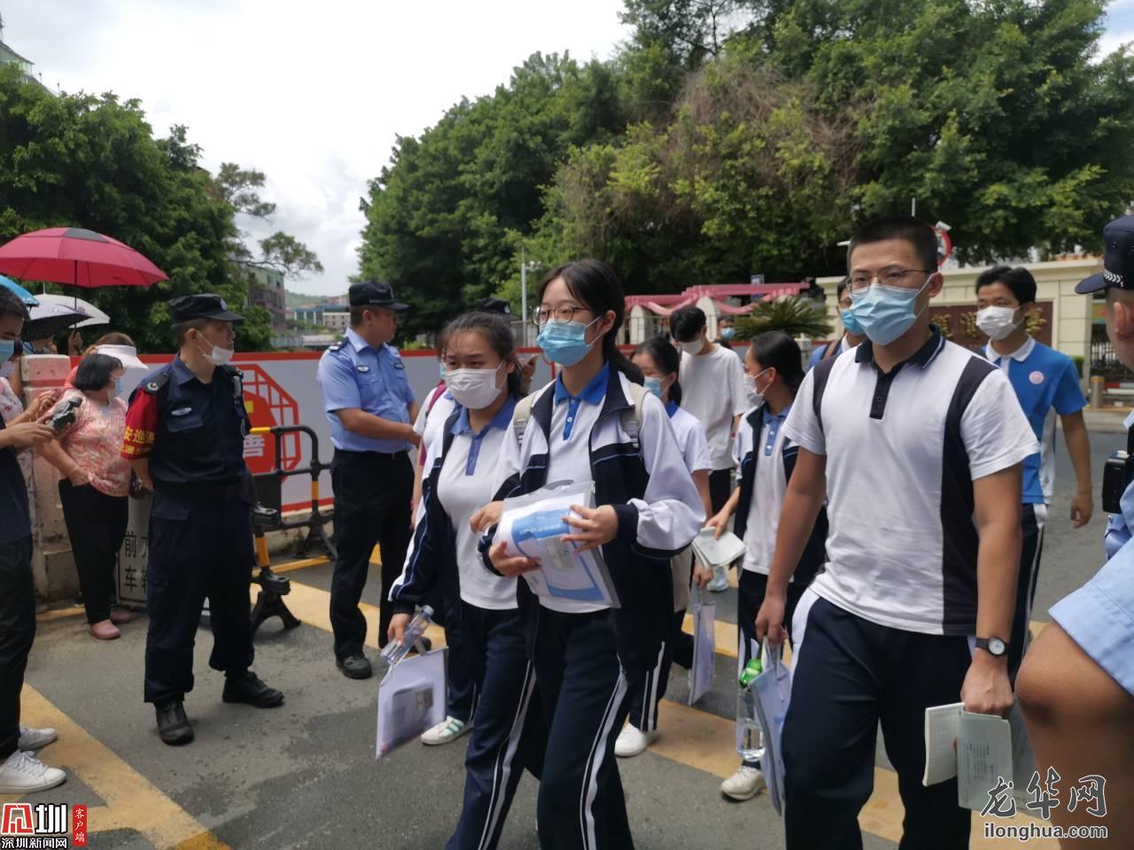 见圳客户端·深圳新闻网7月7日讯(记者 胡安坤 郑瑞欣)今日上午,2020年全国普通高考正式开考,龙华区有2511名学子赴考。今年,龙华区的高考考点与去年一样,分别是深圳第二外国语学校、龙华中学以及观澜中学。3个高考考点均增设防疫副主考,并配备卫生防疫人员。高考首日,深网记者带大家直击观澜中学考点现场。