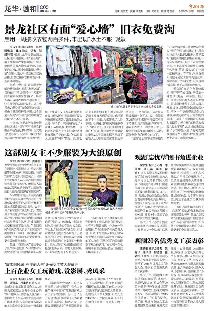 让更多人陪伴和见证这面爱心墙的成长。每次,孔祥玉都会拍下捐赠衣服的情况,讲讲背后的故事,分享到网络上。她也常在微信朋友圈实时播报爱心墙的动态,哪位节省的老人家高兴地挑中合身的衣服,哪位环卫工人找到温暖的棉衣,还有刚到龙华求职的年轻人听人介绍,特意过来选去工厂面试的衣服……