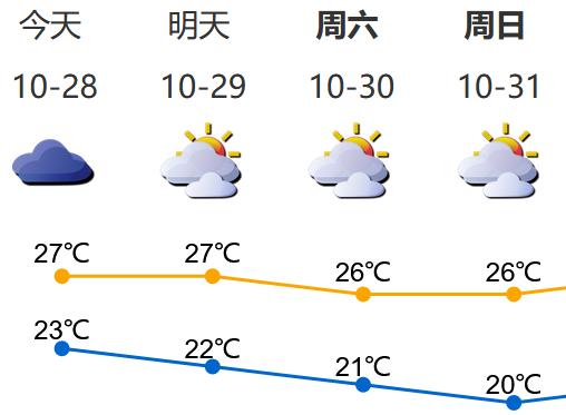 据市气象台消息,本周深圳不会再有明显冷空气,天气平稳,气温小幅波动。今明两天多云为主,天气较为舒适,今天气温23-28℃;周末云量增多,偶有零星小雨,气温略降。