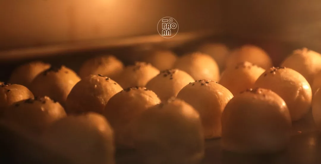 成型后的蛋黄酥送进烤箱进行旋转烘烤,确保每一面都能均匀烤制,高温下烘烤28分钟后便可出炉。