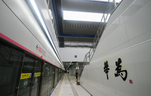 深圳地铁10号线站点项目经理冶云翔告诉记者,为应对华为园区内可能出现的巨大客流,华为站厅层面积扩展至两倍。站厅内6根柱子均安装了LED显示屏,并启用了多种智能设备,与高科技主题相呼应。
