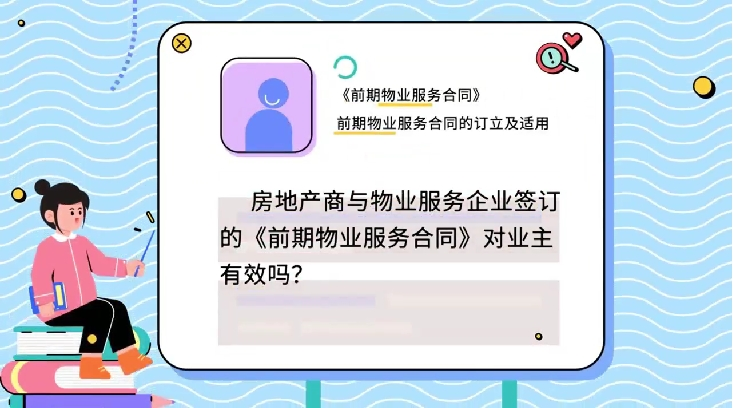 第一期视频让我们重点关注“房地产商与物业公司签订的《前期物业服务合同》对业主有效吗?”这一常见的物业服务问题。