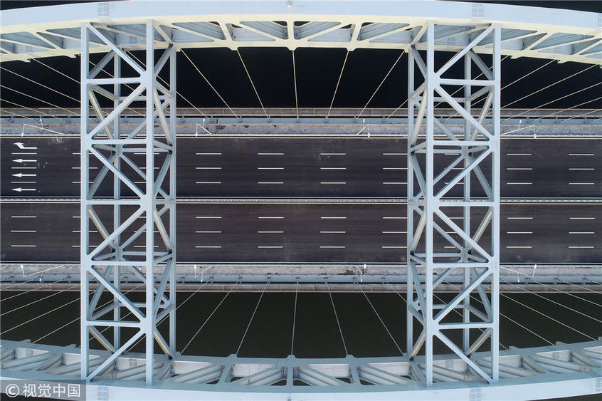 2019年2月4日,湖北襄阳,六两河大桥静静地卧在唐白河上。六两河大桥位于老六两河大桥上游约300米处,全长1945米,桥面宽约45米,双向八车道。大桥北接园林大道,南至苏岭山大道,是东津新区连接襄州区的重要快速通道。大桥主线高架跨越航空路,航空路上有匝道,襄州区方向车辆通过桥西侧匝道上桥后前往东津新区,桥东侧匝道下桥后可前往襄阳东站方向。