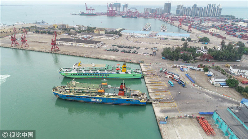 2019年2月10日,海口。当日是春节长假的最后一天,记者在海口秀英港、新海港看到,港口未出现车辆滞留情况,过海待渡车辆井然有序。据了解,今年春运期间,海口新海港、秀英港等港口推行“预约过海”模式,畅通了春节返程路,提前预约的司机比非预约的司机至少可以提前1个小时过海。