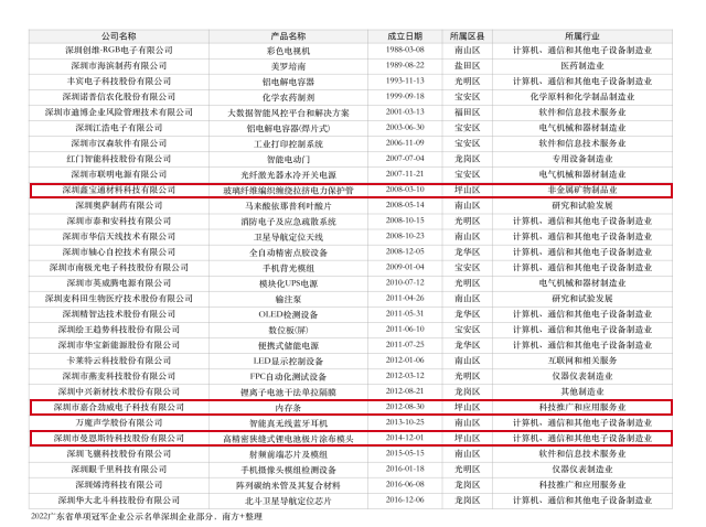 近日,广东省工业和信息化厅发布2022年省级制造业单项冠军企业(产品)通过名单的公示,共103家单项冠军示范企业、148家单项冠军产品。深圳有30家单项冠军示范企业、54个单项冠军产品入围。其中,位于深圳市坪山区的深圳新宙邦科技股份有限公司、深圳市沃尔核材股份有限公司和深圳市天道医药有限公司上榜单项冠军示范企业名单;深圳鑫宝通材料科技有限公司、深圳市嘉合劲威电子科技有限公司和深圳市曼恩斯特科技股份有限公司相关产品上榜单项冠军产品名单。