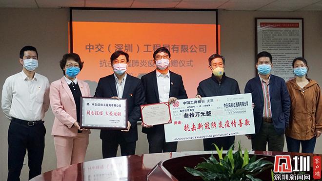 见圳客户端·深圳新闻网讯(记者 杨春丽)2月28日上午,地铁8号线一、二期项目承建方——中交(深圳)工程局有限公司向盐田区慈善会捐款30万元,助力盐田疫情防控和企业复工复产工作,为打赢疫情防控阻击战贡献力量。