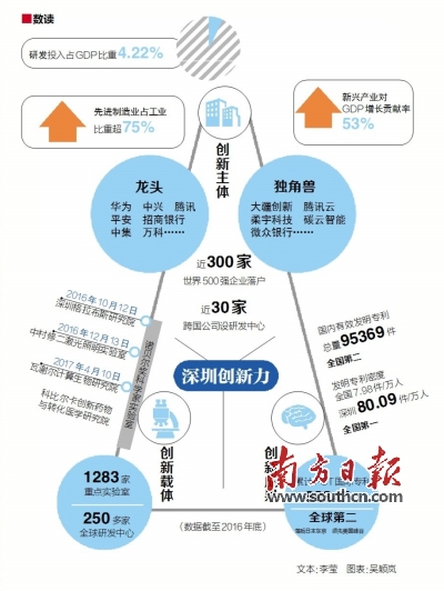 其二,海纳百川,为我所用。创新驱动实质上是智力驱动、人才驱动。科技创新要取得突破,关键在人才。深圳近年来创新驱动发展取得明显成效,一个重要原因就是造就了一批规模宏大、结构合理、敢于担当的高层次创新人才队伍,以80后、90后为代表的一批年轻企业家加速向深圳集聚,逐渐成为创业创新的中坚力量。同时,加大招才引智力度,2016年新引进“孔雀计划”高层次创新团队23个、全职院士6名,新增海归人才1.05万人、高技能人才12.6万人。更加可喜的是,一批世界顶级科学家先后入驻深圳,诺贝尔奖获得者罗伯特·格拉布斯与南方科技大学合作致力于新医药、新材料和新能源领域研究,诺贝尔物理学奖获得者中村修二组建中村修二激光照明实验室在下一代照明技术领域开展前沿研究……毫无疑问,深圳已经成为对全球高端人才最具吸引力的地方之一。