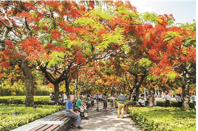 在花城建设上,深圳对照加拿大布查特花园标准,将园博园建成深圳“百花园”;对照纽约中央公园标准,将中心公园—笔架山公园—福田河沿岸建设成“中央公园”;对照香港太平山标准,将大南山公园建设成国际知名城市公园等。同时,深圳全面推进创建国家森林城市,启动森林生态修复工程,2017年推进实施改造森林面积5500公顷,建立了华南地区最大的森林公安数据中心,并科学开展保护区规划修编和功能调整,以保护深圳的绿水青山。如今的深圳,已是名副其实的公园之城,公园成了市民休闲娱乐的好去处,也提升城市竞争软实力。