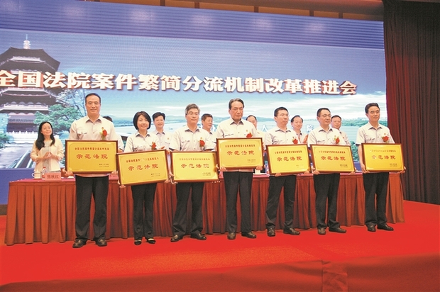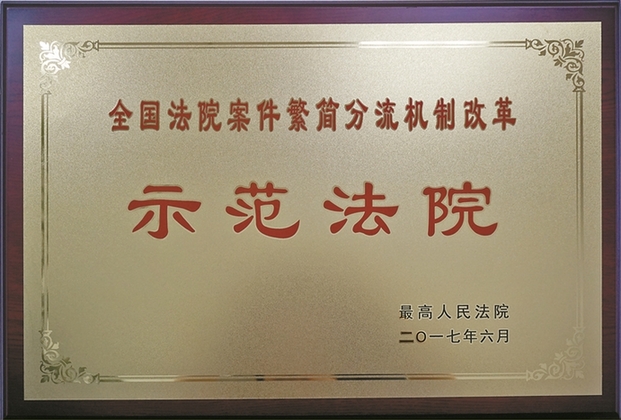 2017年6月,最高人民法院在杭州召开全国法院案件繁简分流机制改革推进会,深圳市中级人民法院被授予“全国法院案件繁简分流机制改革示范法院”称号,成为全国示范的样本。