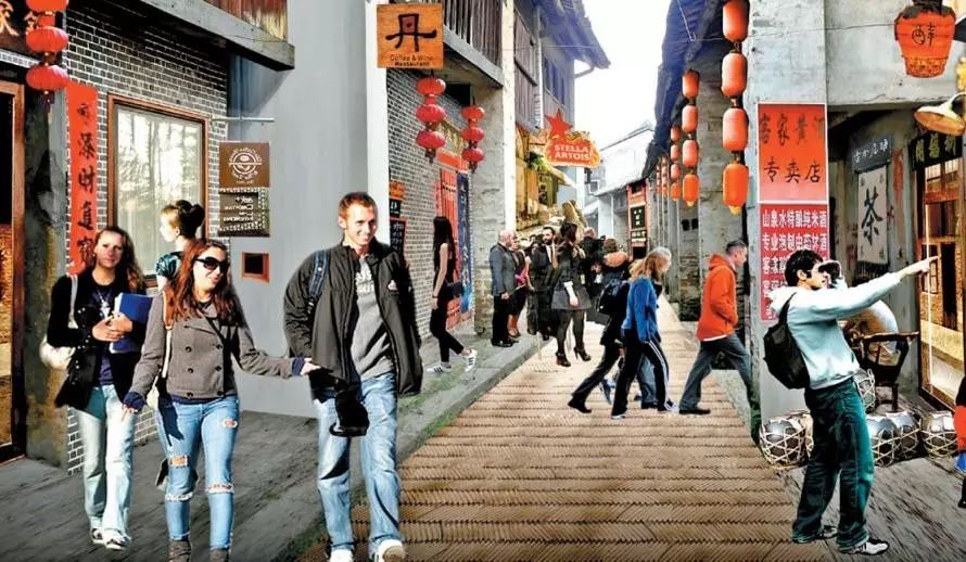 观澜古墟、游客中心、贵湖塘老围和社区文化中心串联成文化弧;