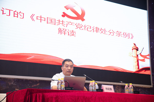 会议由前海合作区纪工委书记黄文雅主持。市纪委监委审理室副主任叶峻峰应邀在会上就新修订的《中国共产党纪律处分条例》为大家作辅导解读。他表示,党中央再次对纪律处分条例进行修订,是党中央站在新的历史起点上,全面贯彻习近平新时代中国特色社会主义思想和党的十九大精神,落实新时代党的建设总要求和全面从严治党战略部署,对坚持和加强党的全面领导、全面加强党的纪律建设作出的再部署、再动员,充分体现了以习近平同志为核心的党中央用严明的纪律管党治党的坚定决心,释放了全面从严治党永远在路上的强烈信号。