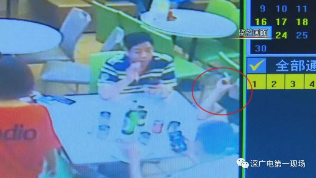 从监控视频可以看到,一名身穿黑色短袖的男子,自从进入这家新皇马茶餐厅后,就开始一边跟身边的朋友聊天,一边抽烟。