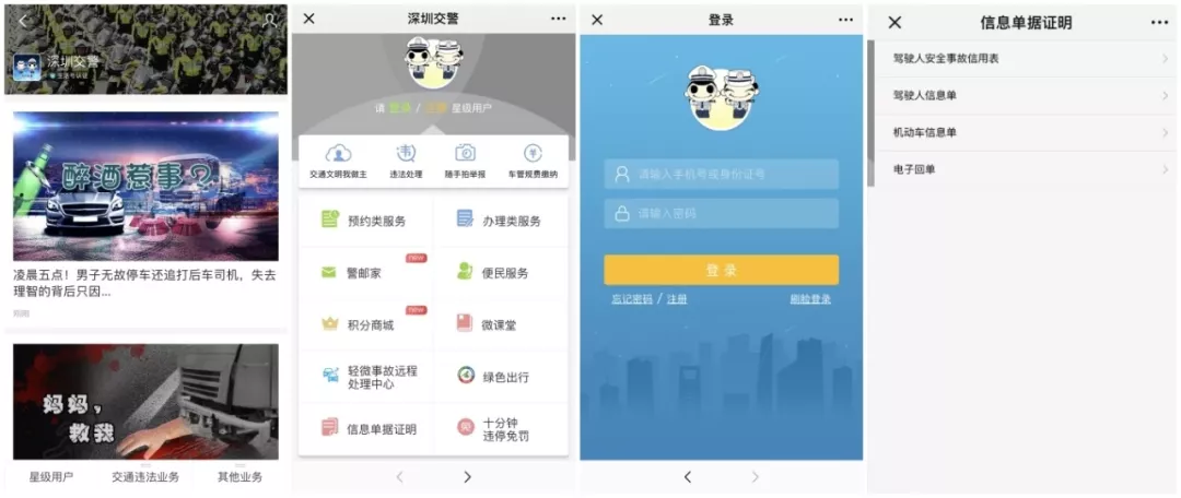 搜索生活号“深圳交警” →登录星级用户 →选择“信息单据证明” →选择需要打印的证明类型