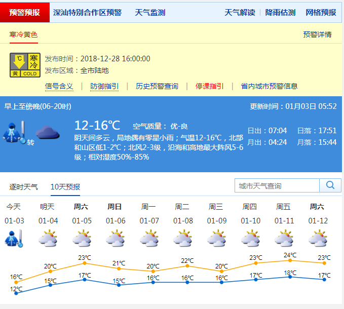 深圳新闻网2019年1月3日讯(记者 陈婕)深圳今天回温了。记者从深圳气象局获悉,今日深圳气温在12-16℃,虽然仅仅升2℃,但已经把所有衣服都穿上的小记觉得,升2℃也是爱。