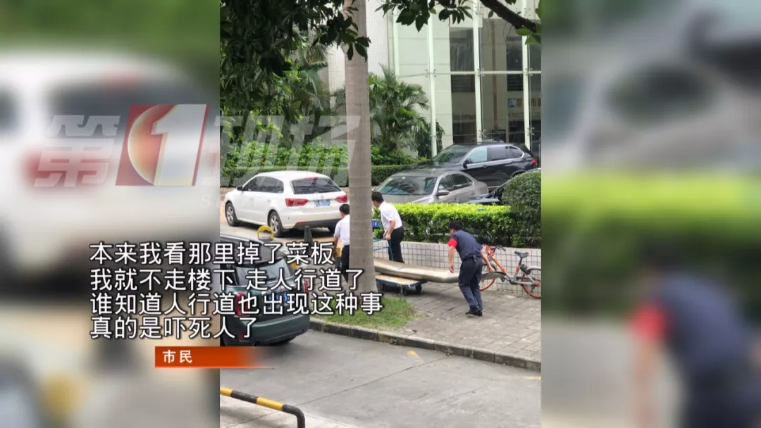 而且,这已经不是第一起高空坠物事件了。前不久,一块砧板就从某户人家阳台坠落到地面,所幸只是擦伤了一位路人。