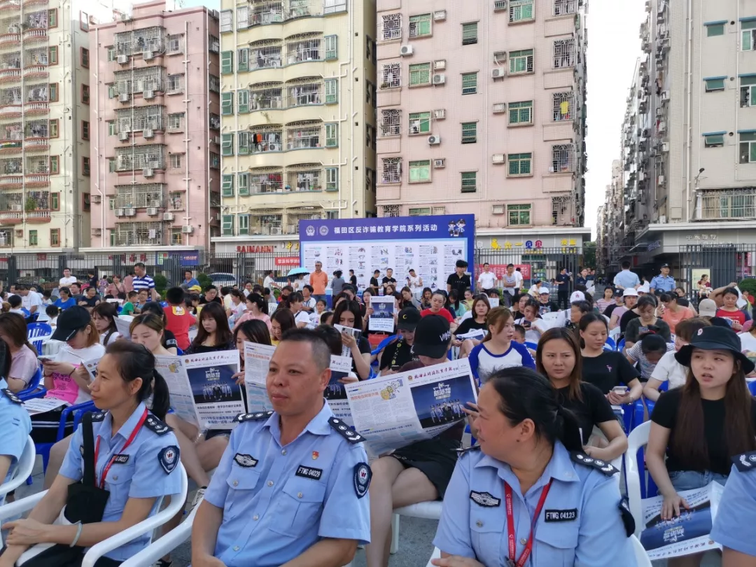 7月24日,“福田区反诈骗教育学院”系列活动走进沙嘴文化广场。本次活动覆盖附近居民近3000人,派发宣传单及反诈周刊近1000张。