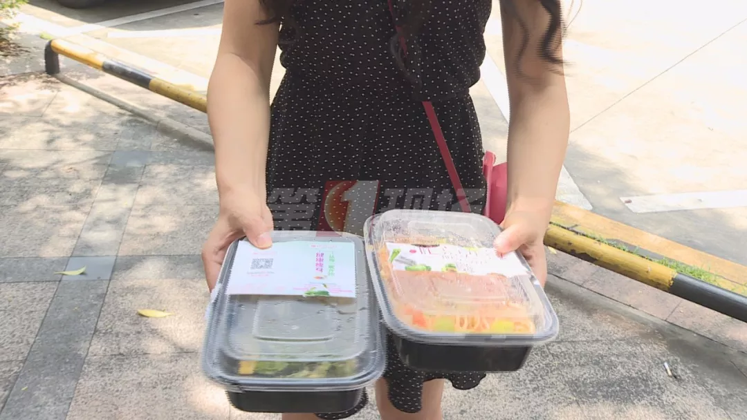 昨天下午,辛女士在美团外卖上一家“忙点沙拉店”,点了一份鸡肉沙拉和意面。