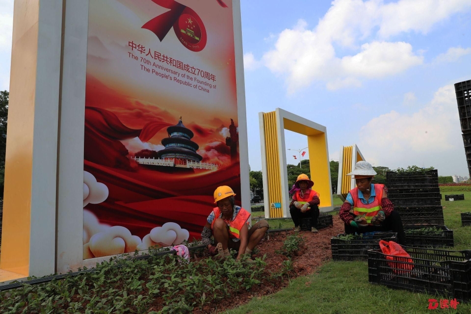 深圳特区报2019年9月12日讯明天就是中秋假期了,国庆节也快到了!9月12日,记者走访多条街道感受到,深圳街头开始洋溢着节日氛围,流线型的“凤凰飞羽”图案花带在深南大道中间绿化带上“飞舞着”,道路两侧一面面高挂的五星红旗迎风飘扬。近日,深圳市城市管理和综合执法局在全市组织开展了国庆节氛围营造工作,以热烈、喜庆、祥和的氛围迎接节日的到来。