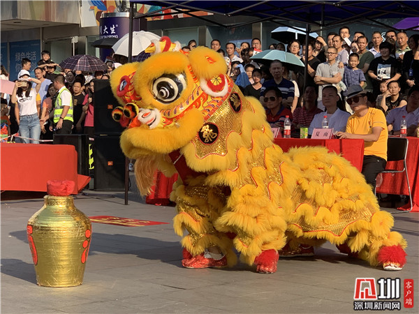见圳客户端·深圳新闻网10月20日讯(见圳客户端、深圳新闻网记者 李云云)瑞狮醉酒、满地翻滚,猛然间惊醒又“洋洋得意”……这样的狮子威风凛凛又活泼可爱。10月20日,2019年深圳(龙岗)文体旅游休闲季暨“金秋十月,彩旗飘扬”龙岗舞狮专场在龙岗世贸百货广场拉开帷幕,12支来自佛山、东莞、汕头以及龙岗本土等地的舞狮队伍同台展示风采,诠释不同地区的舞狮精髓。