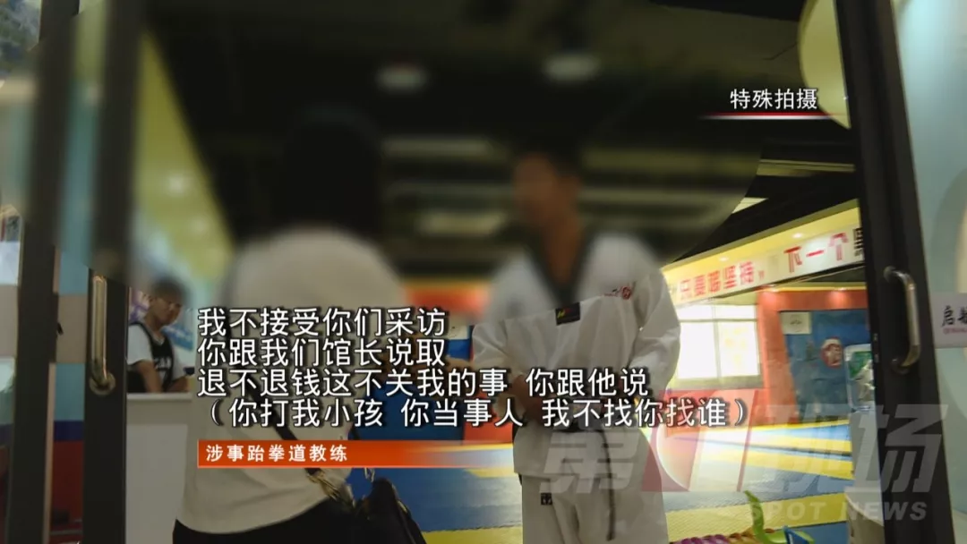 记者陪同陈女士来到这间跆拳道馆,在现场有一名男子,陈女士说就是涉事教练。记者想要了解情况,但该男子反应激烈。
