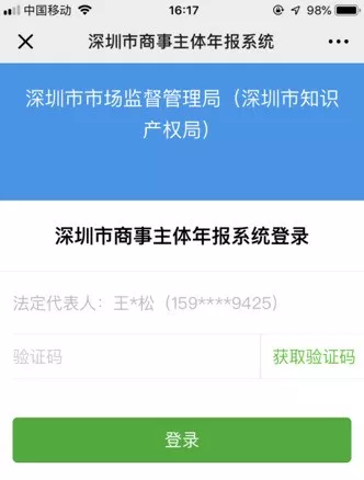第一步:通过扫描新版营业执照二维码或进入深圳市场监管官微点击“公众服务”栏目下的“商事主体年报”进入手机年报登录界面。