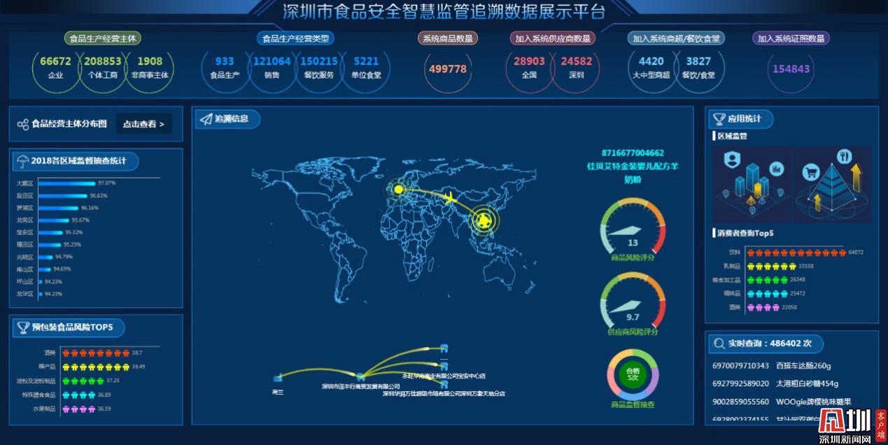 深圳市食品安全智慧监管追溯数据展示平台首页