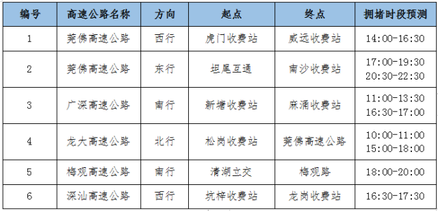 预计2月7日-2月13日(节后第二周)为返深高峰期,市内及城际部分高速公路将出现局部拥堵,具体分布如下:
