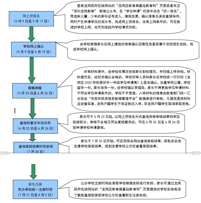 晶报2020年4月28日讯 4月28日,读特记者从龙岗区教育局了解到,龙岗区小一、初一学生申请即将在5月7日、9日启动,学位申请结束时间分别是5月16日、17日。值得注意的是,家长在共享学区内申请优享学校的学位,积分将增加2.5分,独生子女增加1分。今年,除了登录龙岗政府在线网站的“龙岗区教育局基础教育科”页面申请学位外,家长还可以通过“深圳龙岗教育”微信公众号进行申请学位,更加方便快捷。
