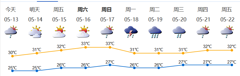 我市阴天间多云,有分散阵雨;气温25-30℃;东风2-3级;相对湿度65%-95%。