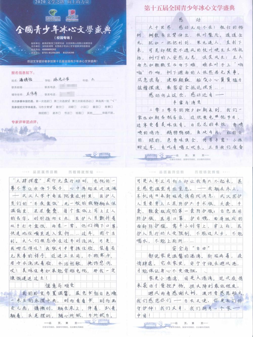见圳客户端 ·深圳新闻网2020年7月14日讯 (记者 曹园芳)“第十五届全国青少年冰心文学盛典”活动自启动以来,深圳市中小学生、教师热情参与,截止目前,已有上万人报名。现在,活动依然在火热进行中。