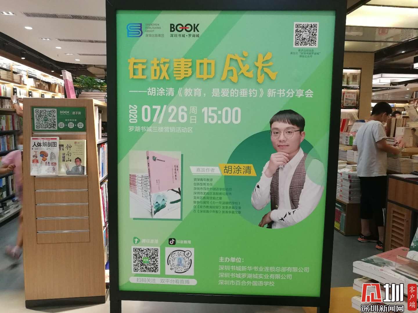 见圳客户端·深圳新闻网2020年7月27日讯(记者 张玲 实习生 王舒蕾)在教育工作者的眼中,教育是什么样的?7月26日下午3点,深圳市百合外国语学校胡涂清老师携新书《教育,是爱的垂钓》做客罗湖书城,与读者朋友们分享了任教经历的暖心故事和独到见解。