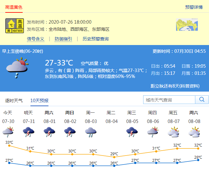 见圳客户端·深圳新闻网2020年7月30日讯(记者 陈婕 施冰冰) 你那里下雨了吗?昨日深圳中西部地区出现强雷雨,高温天气得到缓解。今天天气如何?记者从深圳市气象台了解到,7月30日多云,有(雷)阵雨,局部雨势较大。30日夜间至8月1日白天受偏东气流影响,有间歇性雷阵雨,局部暴雨,雨时伴有短时8级阵风,高温天气缓解,2-5日有明显降雨过程。