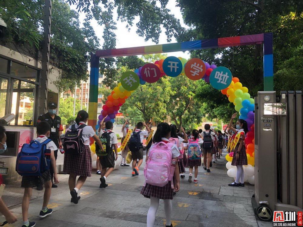 【福田区教育科学研究院附属小学】孩子们通过彩虹门进入校园。