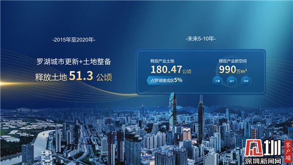 深圳新闻网讯(见圳客户端、深圳新闻网记者 李慧 通讯员 张一鎏 )2015年至2020年,罗湖通过城市更新、土地整备,共释放了51.3公顷的土地。未来5-10年还将释放180多公顷,占整个建成区面积的5%;同时,还将集中释放出大量的、成片的、优质的产业新空间,累计约990万平方米……在罗湖区今日举办的招商大会上,常务副区长范德繁在推介罗湖土地及产业空间时,率先公布了这组数据。