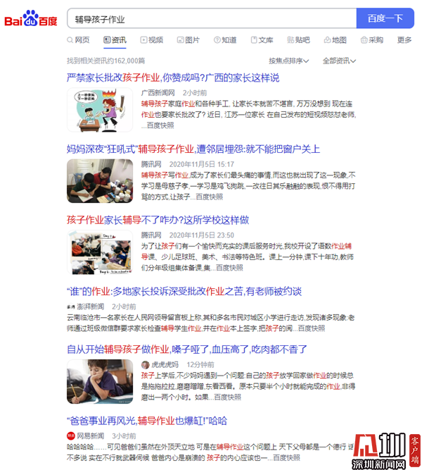 中国青少年研究中心家庭教育首席专家孙云晓介绍,全国妇联的一项调查显示,40%以上的家长觉得无力辅导孩子作业。家长们对此有多愁苦?百度搜索“辅导孩子作业”的资讯,弹出16.2万篇文章,大部分是关于家长各种吐槽。《作业把孩子难哭了,辅导作业把妈妈气哭了,网友:太真实了》、《“爸爸事业再风光,辅导作业也爆缸!”》、《自从开始辅导孩子做作业,嗓子哑了,血压高了,吃肉都不香了》……一篇篇文章的标题,都是关于各位家长辅导孩子时的满肚子苦水。
