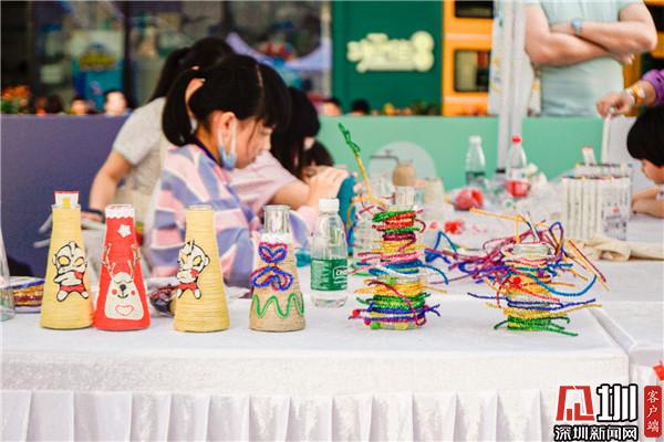 在罗湖,各个会场的活动堪称精彩纷呈,除了街道,商圈活动更是热潮迭起。水贝商圈的罗湖IBC环球商务中心外庭北广场从11月7日下午即开始广泛宣传,有趣的环保达人集市如蓝晒DIY、牛奶瓶华丽变身、环保袋彩绘等活动吸引了众多市民、亲子家庭甚至“老外”参加,除了环保集市,这里也设有物物交换、各种新奇好玩的游戏,还有减量观影会等形式多样的活动,让人们玩转玩嗨垃圾减量。