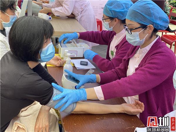罗湖中医院外科党支部宣传员喻意美介绍,此次义诊,罗湖中医院共挑选了20多名医护人员参加,包括外科、泌尿科、肛肠科、儿科、妇科等,为老百姓提供多样的免费的中医治疗项目。“我们这一次除了医生探诊之外,也重点也推广医院的两癌筛查,传播健康知识和中医保健,让更多的人去了解两癌,早发现、早诊断、早治疗,让大家都有养生保健的意识和概念。”罗湖中医院外科病区主管护师李快艳在接受采访时说道。