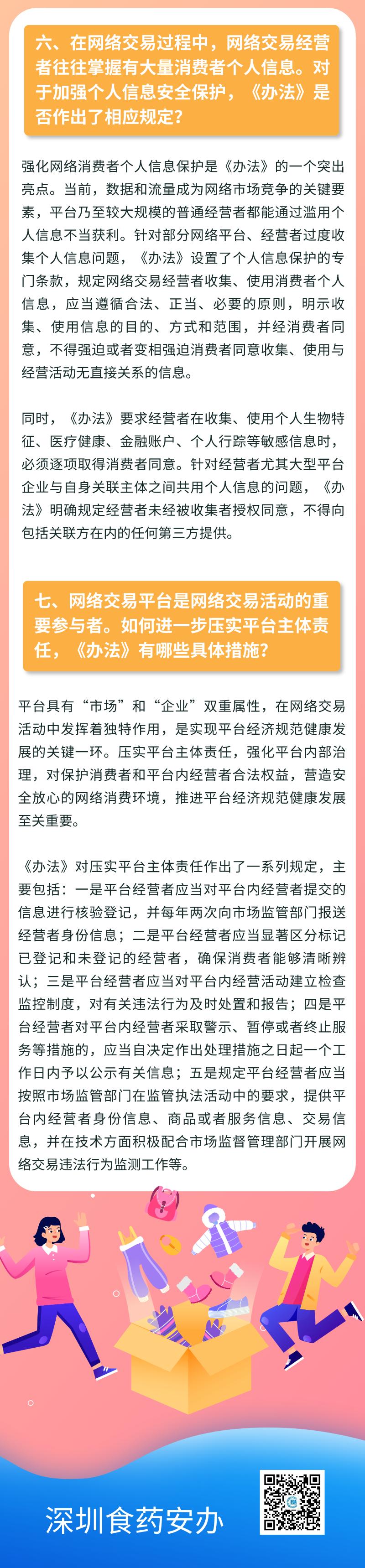 《办法》明确了网络交易监管坚持鼓励创新、包容审慎、严守底线、线上线下一体化监管原则,提出推动完善多元参与、有效协同、规范有序的网络交易市场治理体系,对网络经营主体登记、新业态监管、平台经营者主体责任、消费者权益保护、个人信息保护等重点问题作出了明确规定。