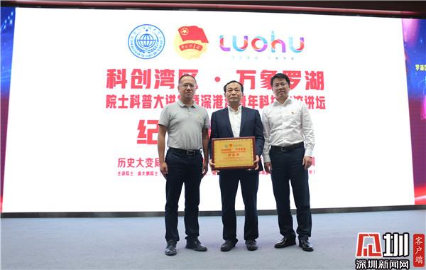 活动中,姚波和戴泽桦代表活动主办单位向俞大鹏赠送了“科创湾区 •万象罗湖|院士大讲堂暨深港澳青年科技交流讲坛”纪念牌,衷心感谢俞院士在百忙中到罗湖传授宝贵知识和对罗湖区科普工作的大力支持。